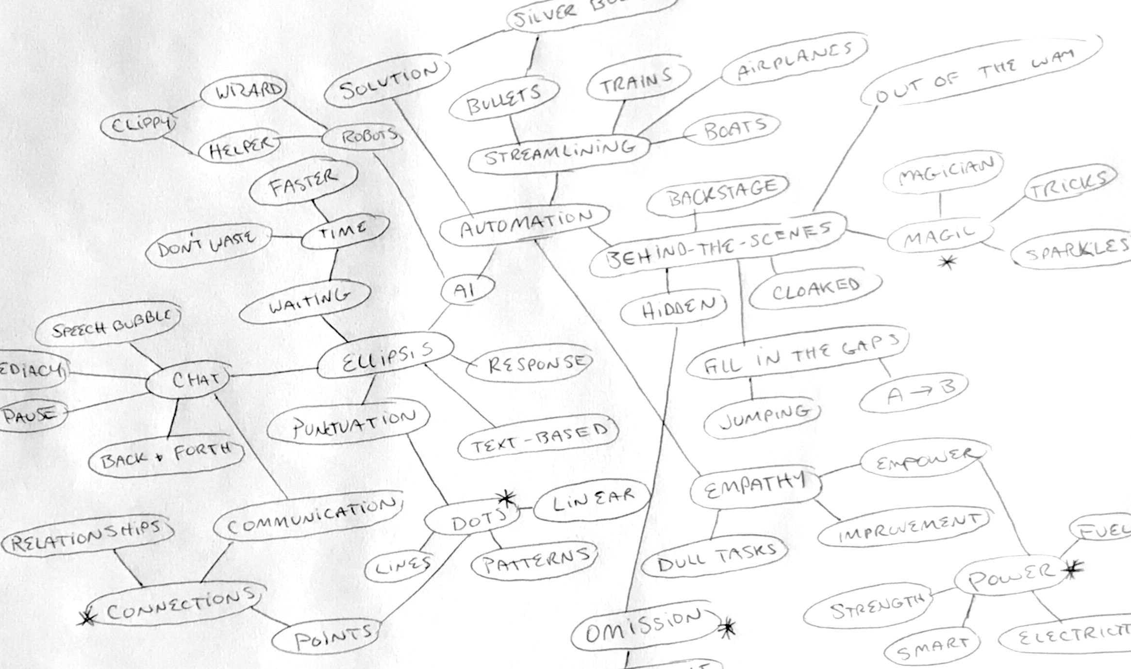 Mind mapping is process where I explore word associations, and map the connections between different concepts. It aids in idea generation and helps me to visual symbols which may turn into early logo concepts.