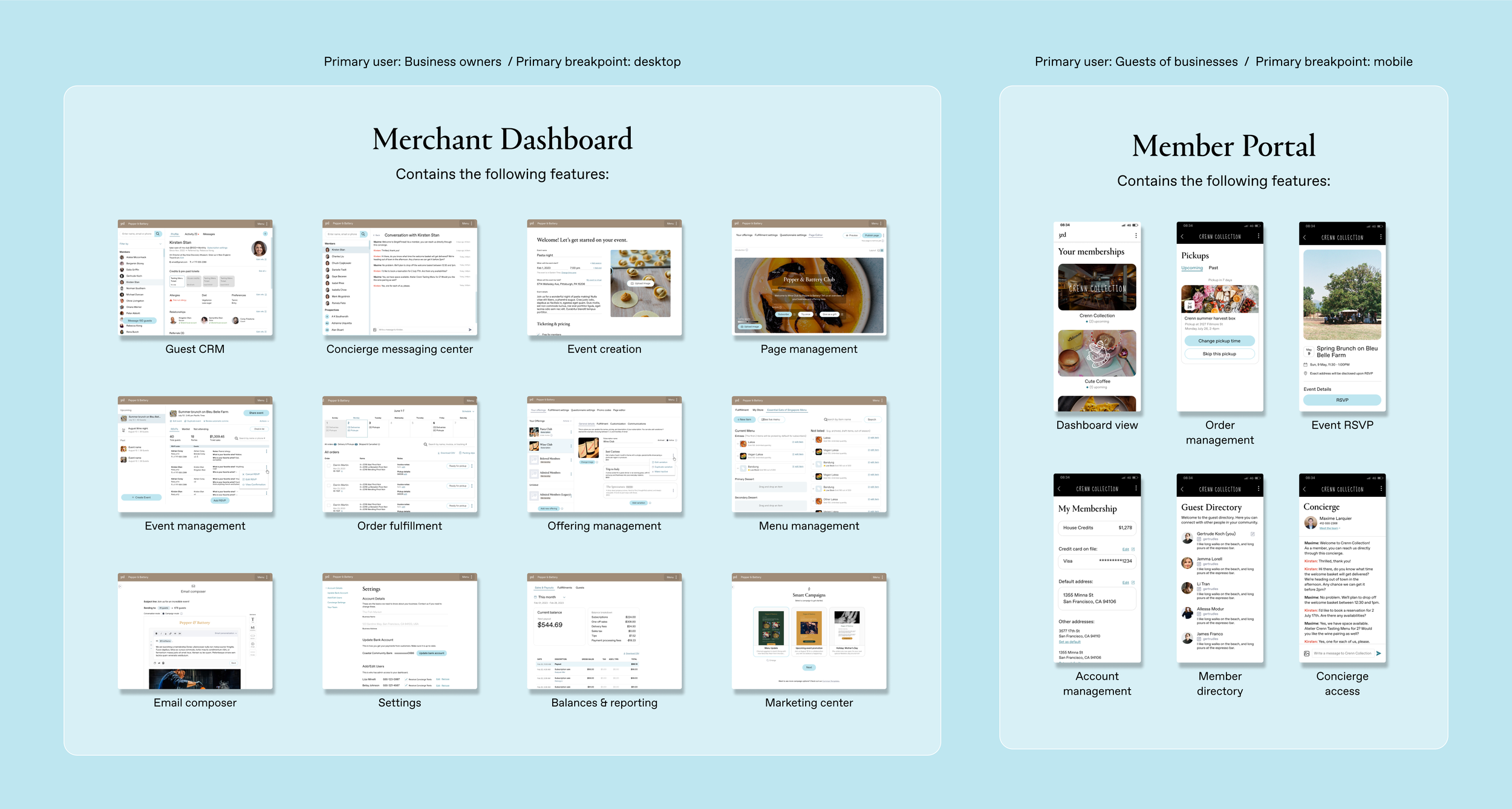 There are two main product experiences based on our two user types: small business owners, and their customers.